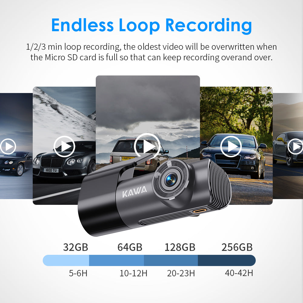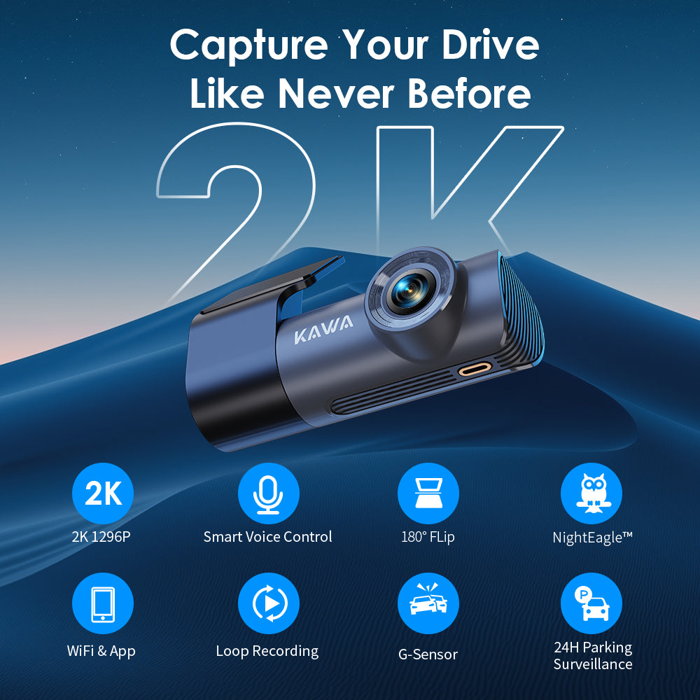 KAWA D5 2K mini dash camera provides exceptional clarity with a 1296P /30fps resolution, capturing every detail day or night than 1080P dash cam.