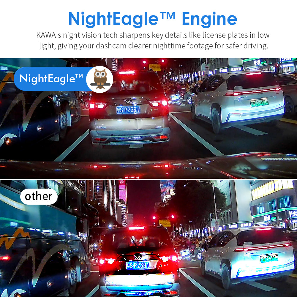 Equipped with image processors for WDR and 3D DNR noise reduction, the KAWA D5 dash cam provides sharp images regardless of day and night.