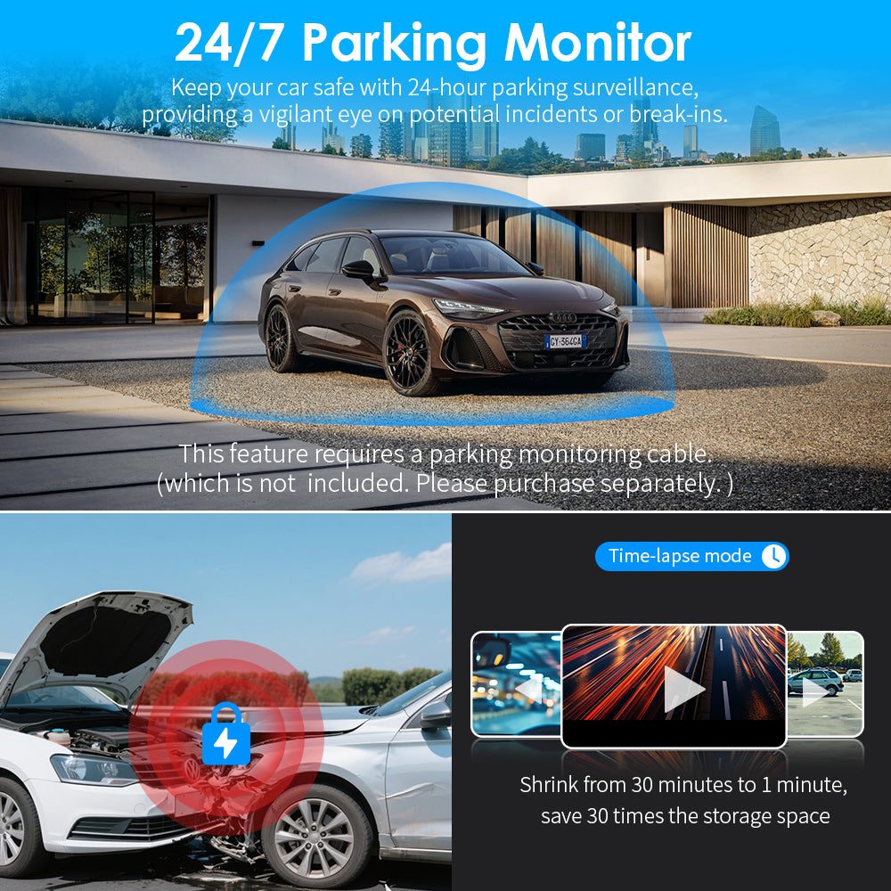 Provide crucial 24-hour evidence. Requires an additional purchase of a hardwire kit and proper installation. Records parking incidents like hit-and-runs to safeguard your vehicle.