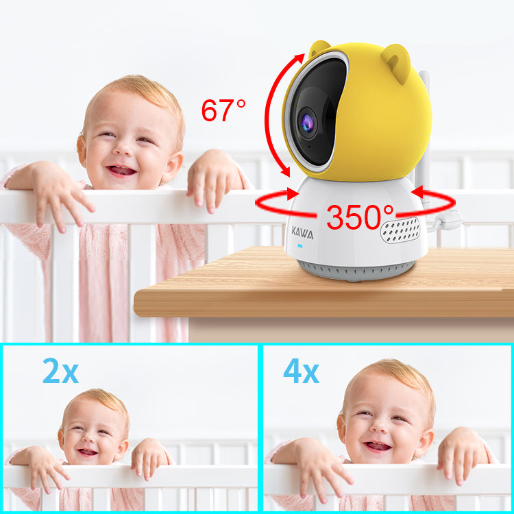 Each corner is covered with pan 350° and tilt 67°, easily making the video monitor controlled remotely. Need a closer look? 4X zoom makes it possible to watch every detail of your baby more closely and clearly.
